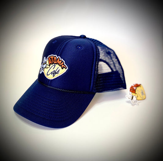 Atomic Cafe - Navy Trucker Hat with Atomic Logo