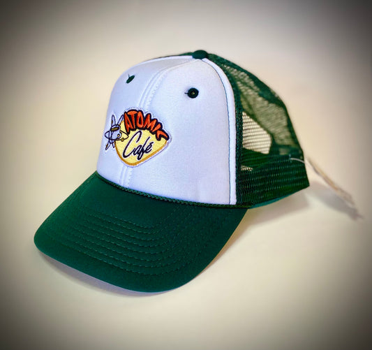 Atomic Cafe - White & Green Trucker Hat with Atomic Logo